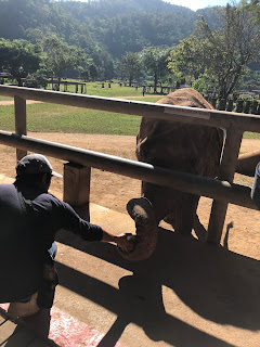 We then took a walk around some of the grounds. We saw several female elephants, some of which we were allowed to slowly approach and pet, others, we were told to stay away from (but even those, passed incredibly close to us.) Each elephant has a staff member assigned. There are three 'babies' here, though for most of the elephants, they are separated into groups of male and female to eliminate breeding.